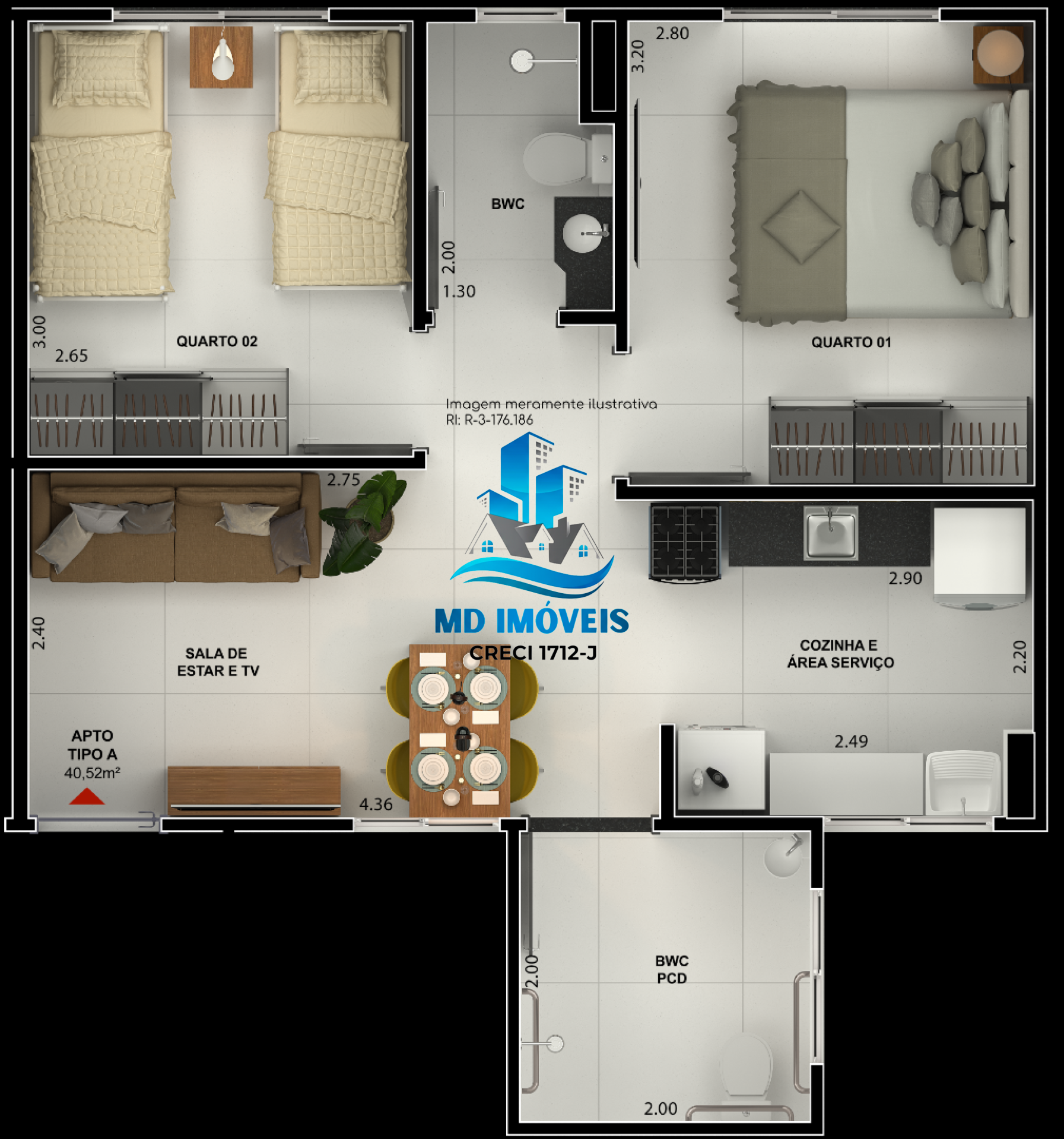 Área Útil: 40.00m²